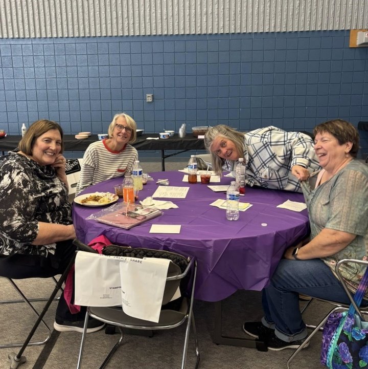 I have group pics courtesy of Todd (and whomever REMINDED me to take them!! THANKS!!) and random pics courtesy of Lynne Hodges, Deanna Edwards & Jamie Sales. Btw Deanna Edwards was the drawing winner for the I Spy Picture Challenge! I’ll get your gift to you soon, Deanna! Plus, I have LOTS of project pics for you. I’ll save some for tomorrow, too.