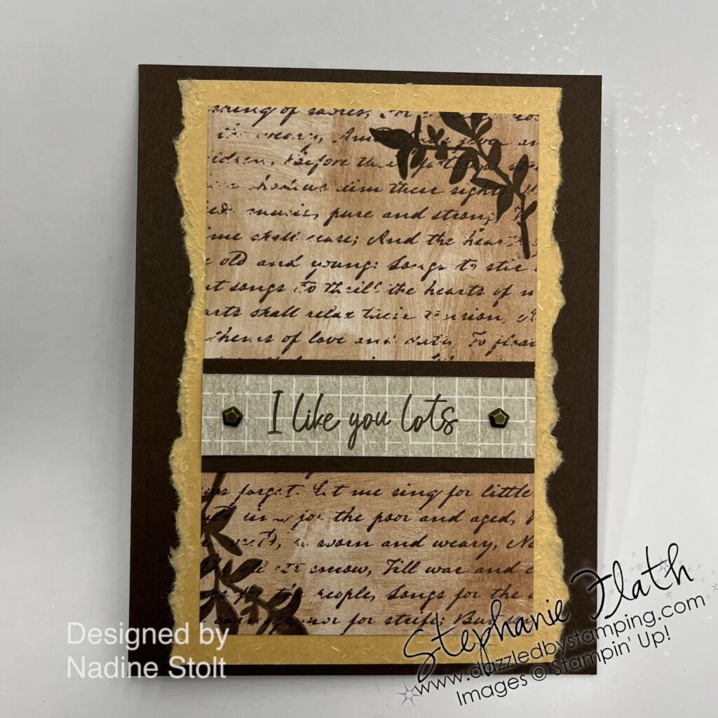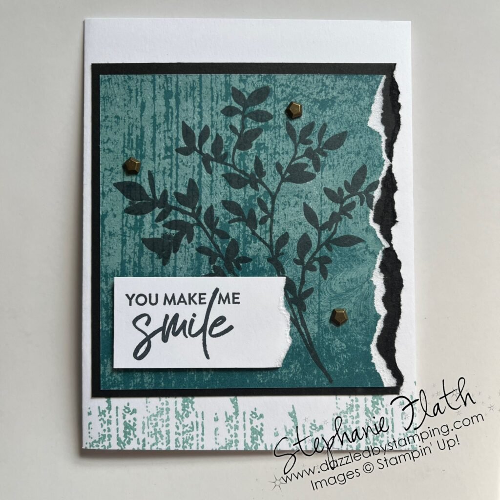 For BOTH of these versions, we used the new Stampin’ Positioner (FREE to new team members with their Starter Kit thru March 2!). I chose this, because I wanted the branches EXTRA dark on this DSP. It worked great!!