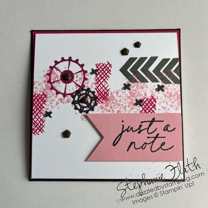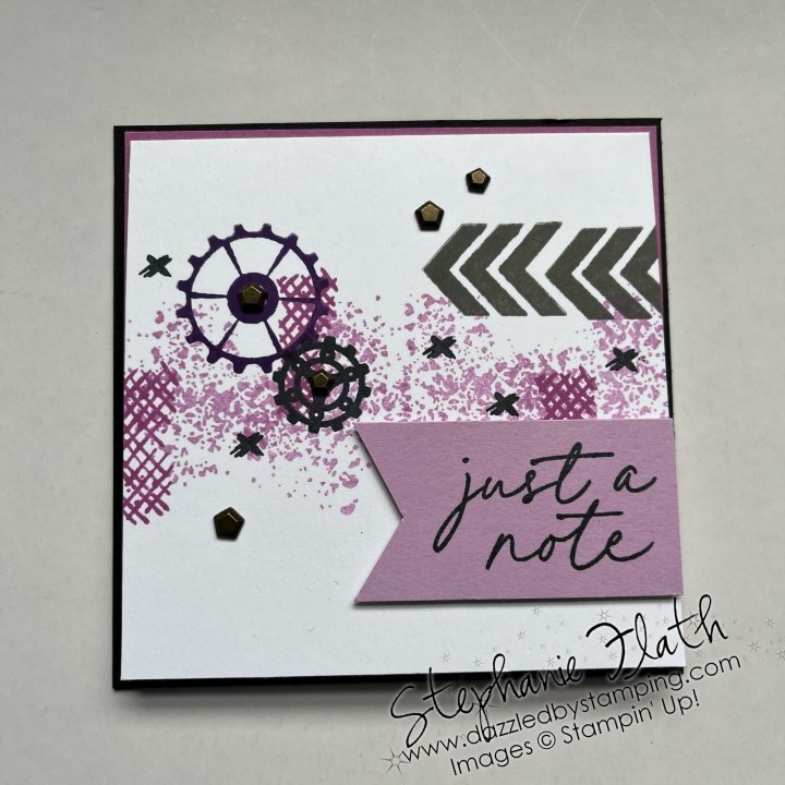 THIS card is the first one I made with the set, and I loved it so much, I needed to make it in different colors. I started with the greens/Lemon Lime Twist. Then we did pinks/Melon Mambo for class and of course, I had to do purples/Petunia Pop.