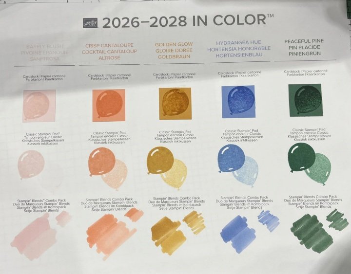 One of the things we could do during OnStage was play with some new product. And we got to see the new In Colors–Barely Blush, (returning In Color) Crisp Cantalope, Golden Glow, Hydrangea Hue, Peaceful Pine.