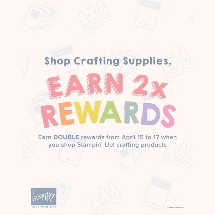 DOUBLE Stampin’ Rewards is still going on today! Earn 20% of your net order total in rewards on future purchases thru tomorrow, 4/17.